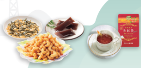 爽やかな風味の和紅茶と、さかなっつハイ!、北海道産小豆のひとくち塩ようかん、