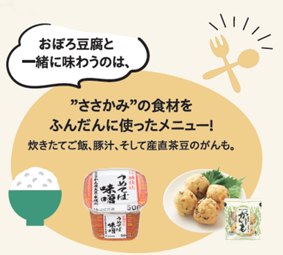 当日は大豆の栽培方法や加工品の紹介、豆腐の製造工程の動画視聴、おぼろ豆腐作りを行います。